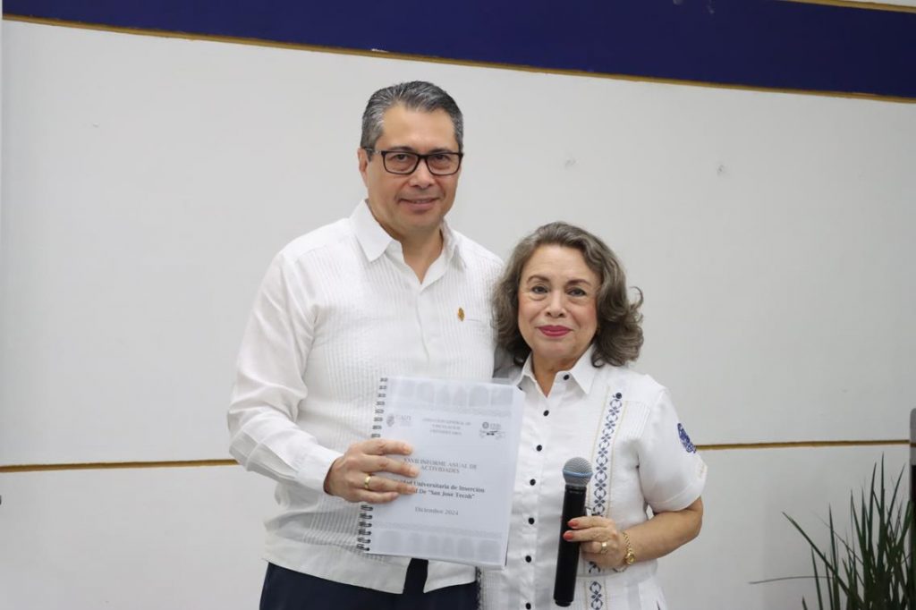 Durante la ceremonia de entrega del informe anual, realizada en el auditorio y reunidos autoridades universitarias, académicos, estudiantes, así como familiar de la comunidad, la responsable de la UUIS, Julia Candila Celis, manifestó que con estos resultados se ha contribuido significativamente en el cumplimiento de nuestra la Universitaria, siendo humanista, pertinente y de calidad que contribuye a la atención de problemáticas socioemocionales y a mejorar el nivel de bienestar de la sociedad yucateca.