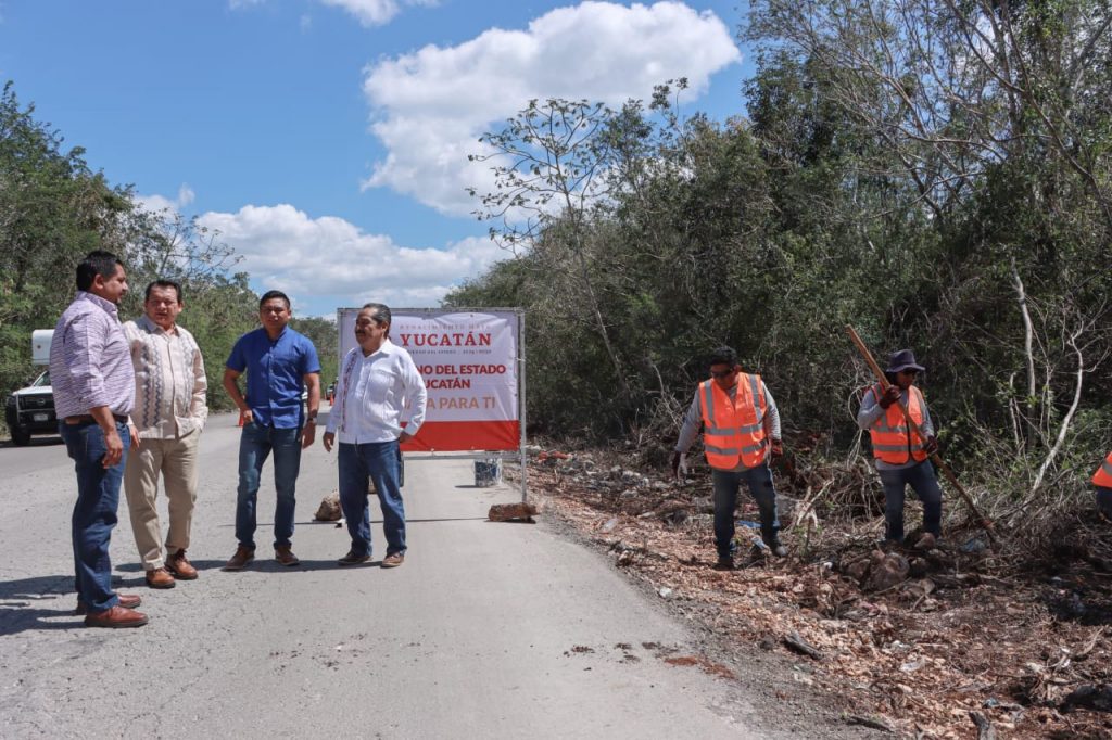 «Estamos supervisando la reparación de una de las carreteras más utilizadas en el oriente del estado. Fue una de las peticiones más solicitadas por parte de los habitantes de Chemax, Valladolid y otros municipios del oriente, que viajan todos los días en auto o en taxi hacia Tulum, Quintana Roo, donde laboran. Por eso se repara la carretera Chemax-Cobá hasta el kilómetro 26.4, que es donde marca el arco antiguo de división limítrofe», indicó Díaz Mena.