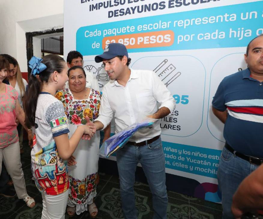 Posteriormente el Gobernador, acompañado de la directora del Sistema para el Desarrollo Integral de la Familia en Yucatán (DIF), María Teresa Boehm Calero, hizo la entrega de los apoyos de los esquemas de Desayunos Escolares e Impulso Escolar, siendo este último programa un beneficio también para los padres de familia, ya que significa un ahorro de 2,950 pesos por niña y niña y para los estudiantes, ya que les brinda la oportunidad de estudiar en igualdad de condiciones.