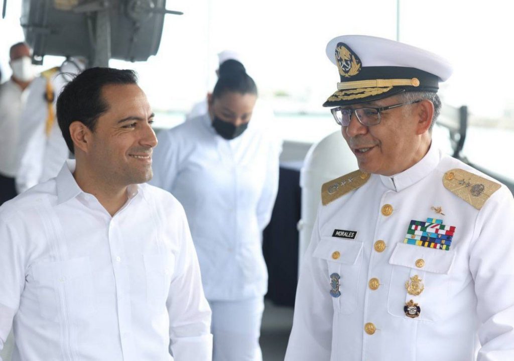 “Generamos oportunidades y beneficios para las y los mexicanos en favor del desarrollo económico sustentable con respeto a la historia, cultura, identidad y tradiciones de cada sociedad, por ello, las y los marinos tenemos en claro que los recursos de nuestros mares le pertenecen por justicia a las y los mexicanos , en este contexto hoy celebramos con entusiasmo el Día de la Marina Nacional y con ello aplaudimos y reconocemos la sobresaliente labor que las mujeres y hombres de mar realizan a favor de nuestro México”, aseguró el Vicealmirante ante el Gobernador Vila Dosal.