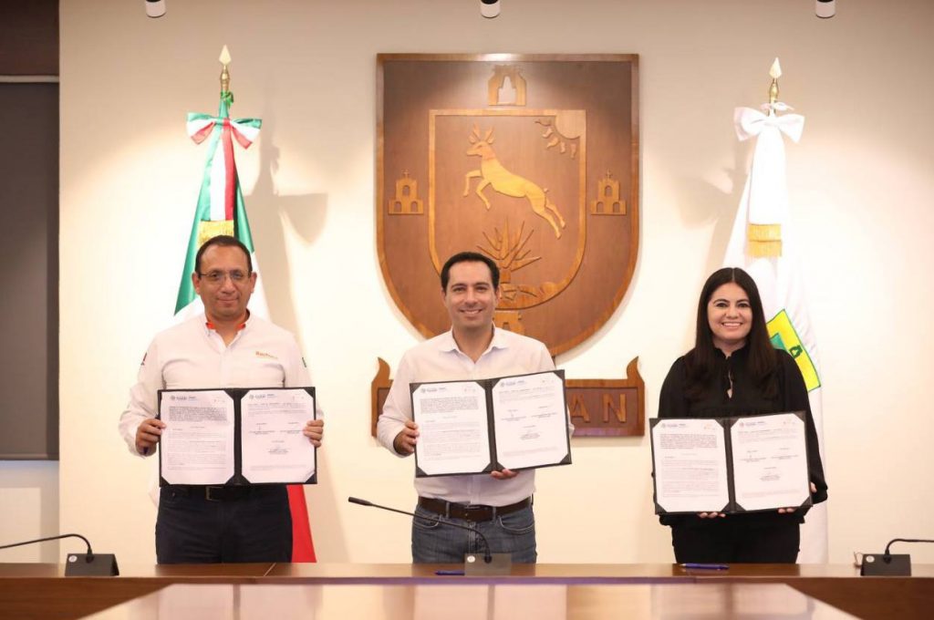 El Gobernador atestiguó la firma del acuerdo entre la directora del Instituto para la Inclusión de las Personas con Discapacidad del Estado (Iipedey), María Teresa Vázquez Baqueiro, y el gerente de la Unidad de Negocio Península de dicha compañía, Hugo Edmundo Monterrey Arriola, el cual permitirá la contratación de dicho número de yucatecos, este año, en un entorno que favorezca su autonomía.