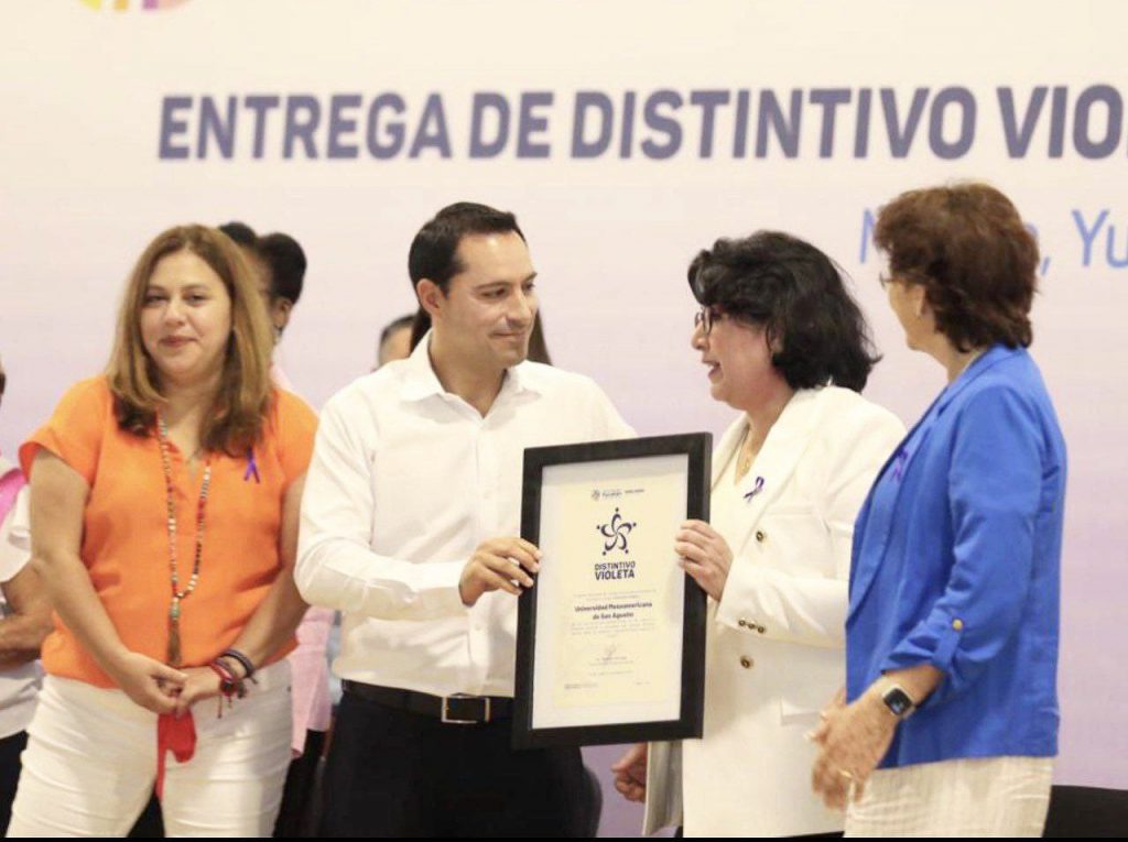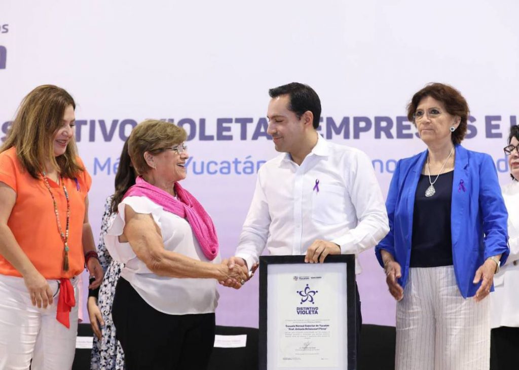 Los cambios los hacemos entre todos y debemos seguir trabajando, por lo que felicito a todas las universidades y empresas que se unieron al Distintivo Violeta”, aseguró Vila Dosal en presencia de la Cónsul de Estados Unidos en Mérida, Dorothy Ngutter.