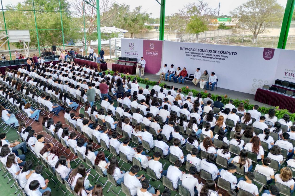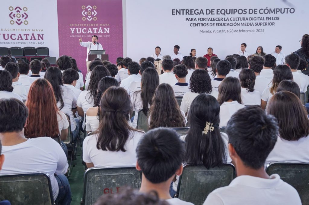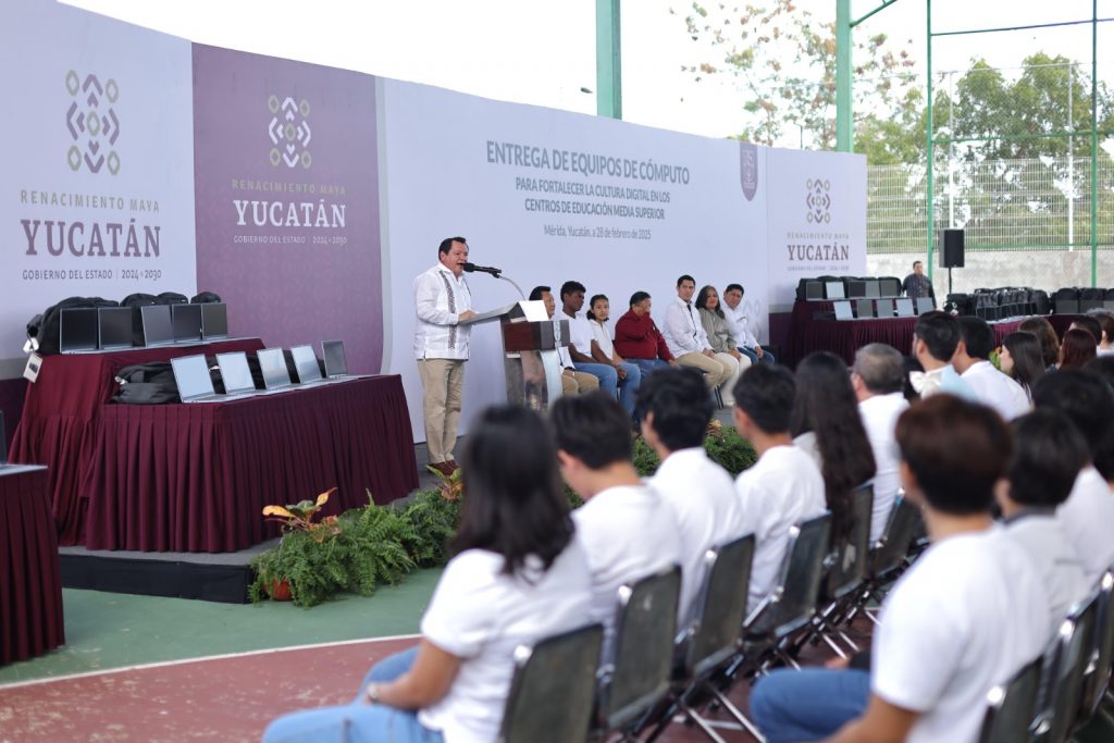 Como parte de los esfuerzos para fortalecer la cultura digital en los centros de educación de nivel medio superior, el Gobernador Joaquín Díaz Mena entregó más de 400 equipos de cómputo a preparatorias estatales de Yucatán, con el fin de que cuenten con las herramientas necesarias para brindar una enseñanza de calidad e igualdad de oportunidades a las y los jóvenes yucatecos.
