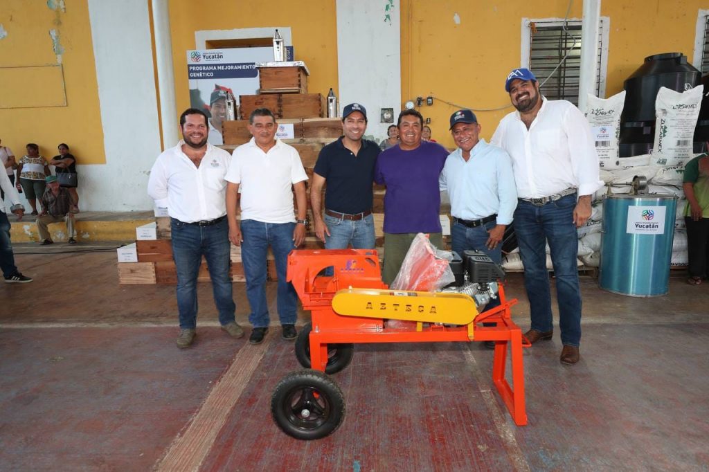 Acompañado del alcalde anfitrión, Luis Fernely Polanco Tun, Vila Dosal refrendó su apoyo a las y los productores con la entrega de los apoyos del esquema Peso a Peso con el cual se están beneficiando 168 productores y productoras de esta localidad a través de una inversión de más de 2 millones de pesos, esto, como parte de los más de 16,970 beneficiarios que recibirán más de 385,500 productos entre insumos, herramientas y equipamiento.