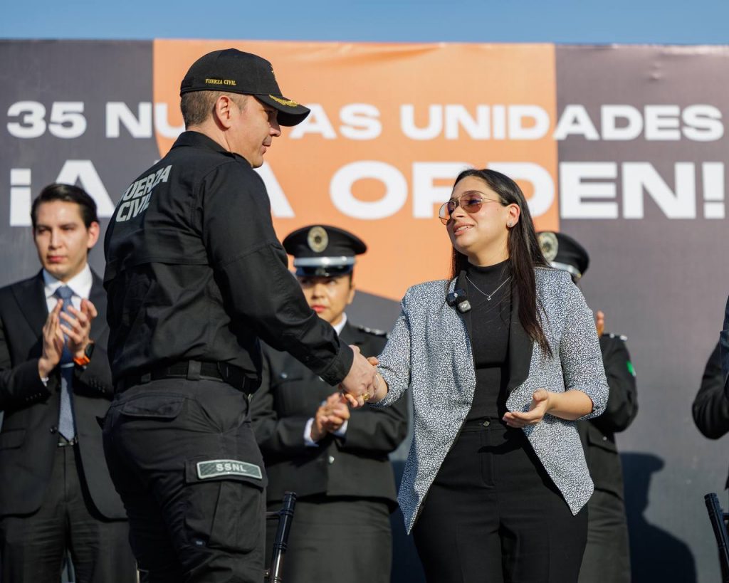 Juárez, Nuevo León, a 31 de marzo de 2026.- Como parte de la nueva estrategia de seguridad, la Presidenta Municipal, Mónica Oyervides Acosta, encabezó la entrega de 35 nuevas unidades operativas para la Secretaría de Seguridad y Protección Ciudadana, con el objetivo de fortalecer la presencia policial y brindar mayor protección a las familias juarenses.