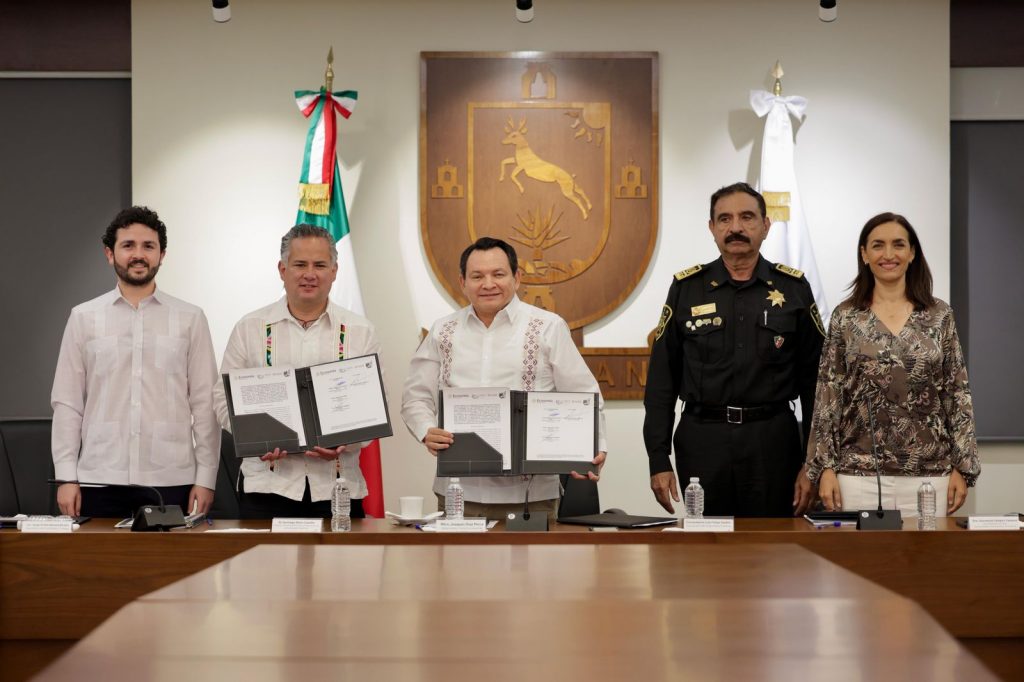 A la firma de convenio asistieron el secretario de Seguridad Pública, Luis Felipe Saidén Ojeda; la secretaria de Ciencia, Humanidades, Tecnología e Innovación, Geovanna Campos Vázquez; el diputado local Wilmer Monforte Marfil; por parte del IMPI la supervisora a cargo de la oficina regional sureste, Mayra Patricia Mendoza Urcelay; la directora Divisional de Protección a la Propiedad Intelectual, Carolina Pérez Luna; así como representantes empresariales y productores de la entidad.