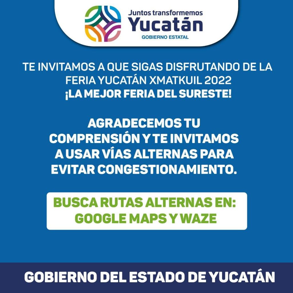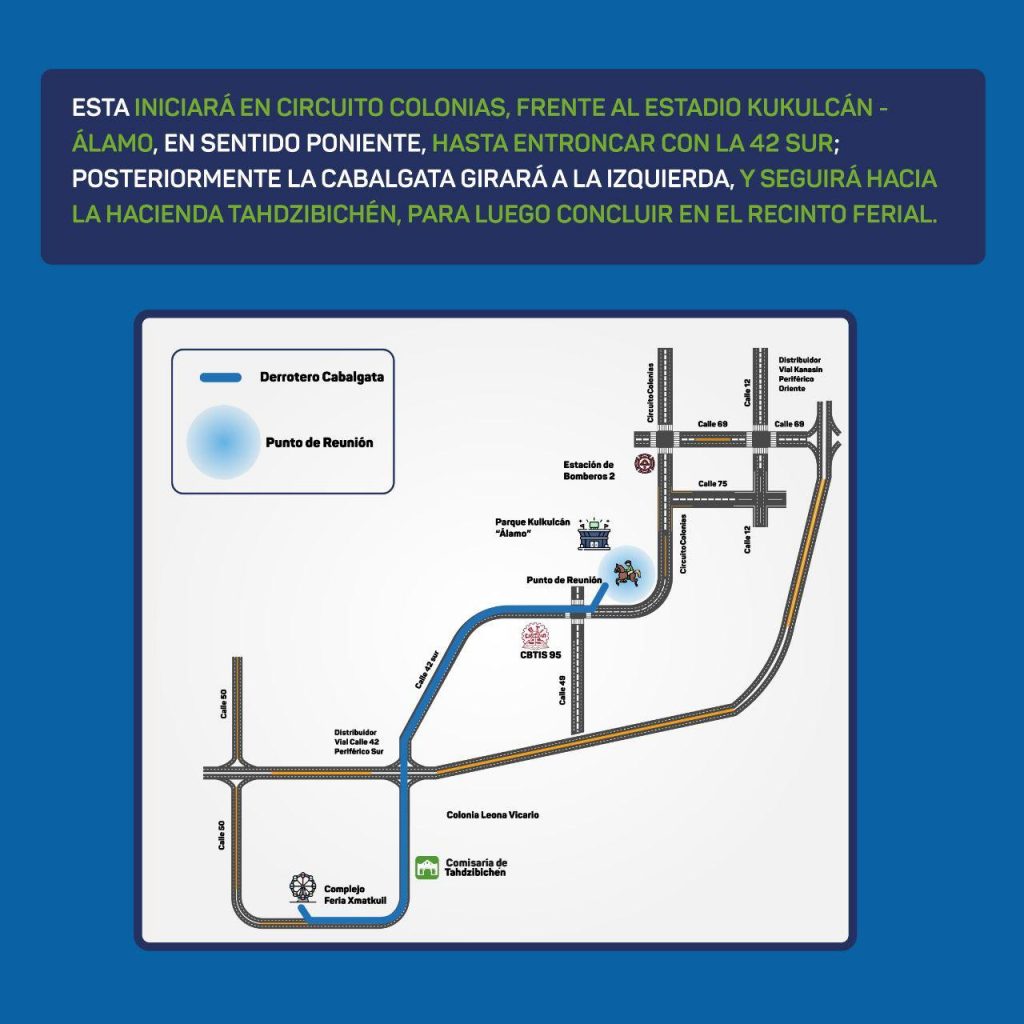 El evento dará inicio a las 9:30 horas, por lo que el operativo comenzará en el Circuito Colonias, frente al estadio Kukulcán-Álamo, en sentido poniente, hasta entroncar con la 42 sur; posteriormente, la caravana girará a la izquierda, se enfilará hacia la hacienda Tahdzibichén y, finalmente, hasta el recinto ferial. Ello interferirá con el tránsito por cerca de dos horas, no obstante, las unidades del transporte público que cubren las diversas rutas por esas zonas tomarán vías alternas para continuar prestando el servicio.