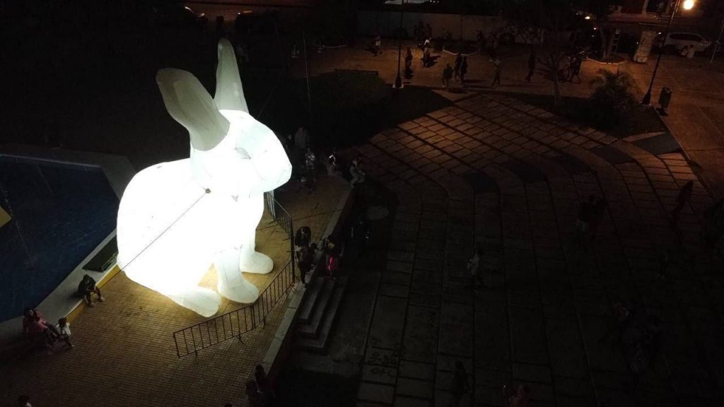 Posteriormente, acompañado del artista de Reino Unido, de la escultura luminíca de la luna, Luke Jerram, Vila Dosal realizó un recorrido por las obras que se están exponiendo como 5 piezas de conejos inflables de gran tamaño que le han dado la vuelta al mundo, y el videomapping en la catedral de Mérida, donde disfrutó junto con las y los yucatecos de este festival.