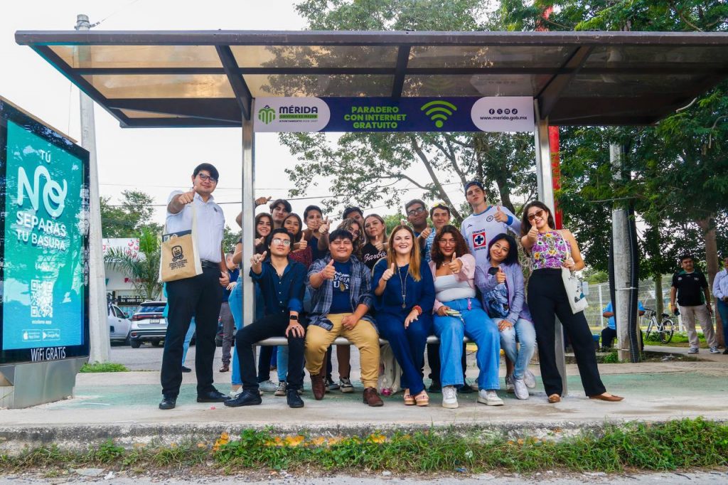 La Alcaldesa visitó uno de los paraderos renovados acompañada de estudiantes del Campus de Ciencias Sociales de la Universidad Autónoma de Yucatán (UADY). Juntos, observaron los mejoramientos realizados y escucharon opiniones de los usuarios.