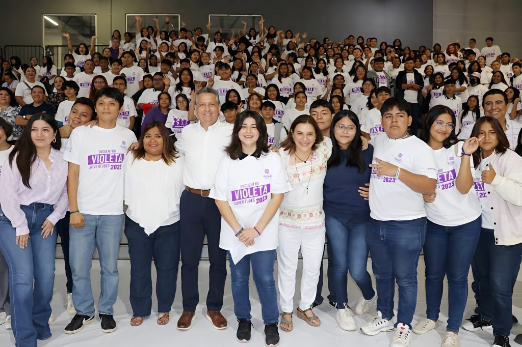 Mérida, Yucatán a 30 de noviembre de 2023.- “Estos espacios son una nueva experiencia de aprendizaje porque nos proporcionan información con actividades interactivas y divertidas y nos la pasamos muy bien mientras conocemos temas que nos sirven mucho como adolescentes”, aseguró Valentina Espinosa Marín, alumna de la Preparatoria Estatal No. 8 Carlos Castillo Peraza durante la clausura del Encuentro Violeta para las Juventudes impulsado por la Secretaría de las Mujeres para reforzar la prevención del embarazo en adolescentes y de la violencia de género, como instruyó el Gobernador Mauricio Vila Dosal.