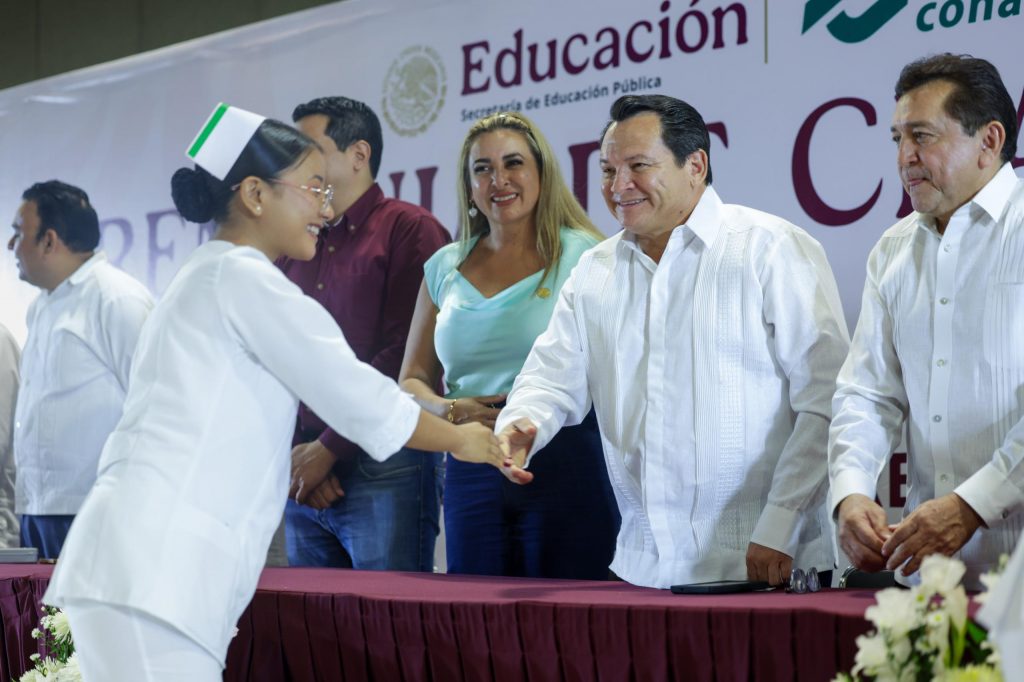 En el marco de la ceremonia de graduación de estudiantes del Colegio Nacional de Educación Profesional Técnica (Conalep) Yucatán, el Gobernador Joaquín Díaz Mena anunció que en breve se lanzará el programa estatal de Becas Universitarias Juventudes Renacimiento, que iniciará en septiembre y beneficiará a jóvenes desde su primer año de universidad.