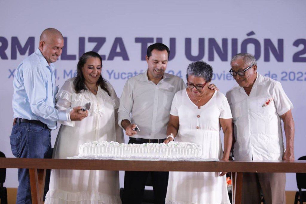 En el marco de la edición 46 de la Feria Yucatán Xmatkuil 2022, Vila Dosal encabezó esta ceremonia, donde más de 500 parejas provenientes de 81 municipios de todo el estado decidieron dar certeza jurídica a su relación contrayendo matrimonio gracias a este esquema, que permite que los contrayentes realicen el trámite de manera gratuita y puedan regularizar su situación.