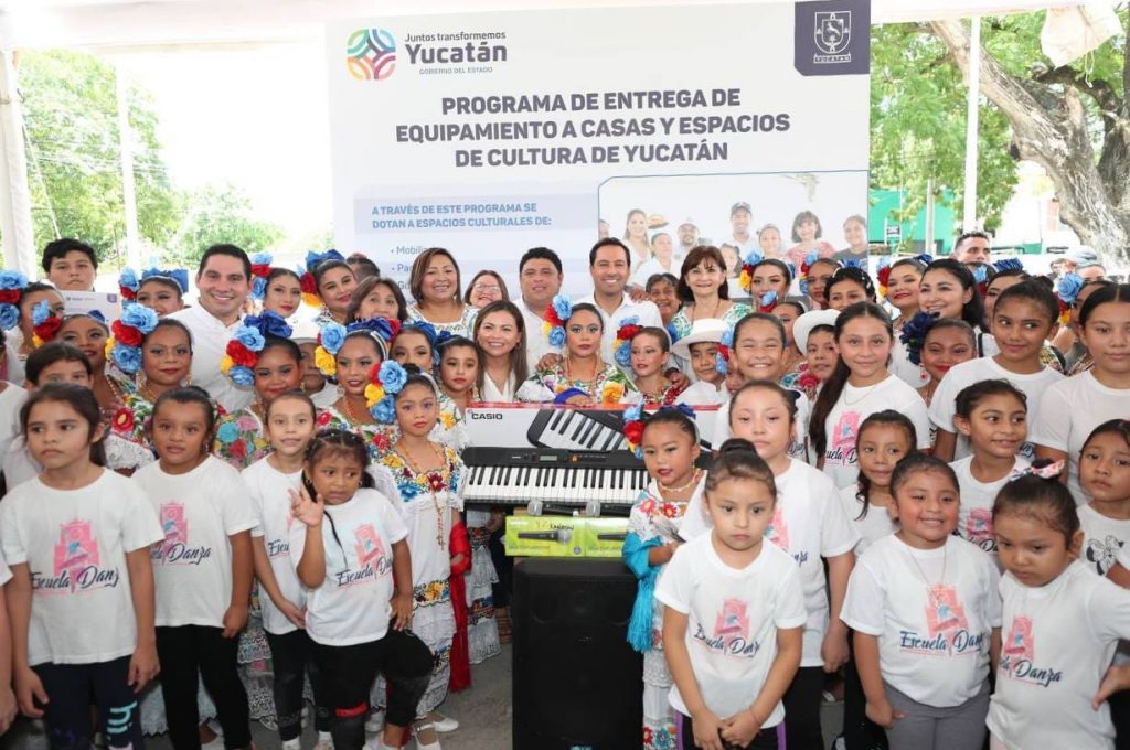 Junto con la titular de la Secretaría de la Cultura y las Artes (Sedeculta), Loreto Villanueva Trujillo, el Gobernador entregó al espacio cultural de Kanasín un kit de equipamiento, que consiste en teclado, bocina y 2 micrófonos, a fin de que, en este municipio, se lleven a cabo acciones de sensibilización artística, orientadas hacia conservar el clima de paz y seguridad.