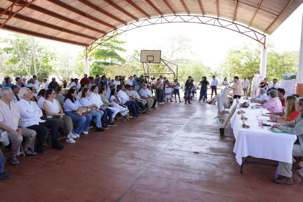 Ante la titular de la Secretaría de Desarrollo Sustentable (SDS), Janine Patricia Quijano Tapia, el mandatario reiteró que el esfuerzo de los habitantes de estas comunidades es un ejemplo a seguir y un modelo de la gran aportación que el pueblo maya hace para conservar el patrimonio natural de Yucatán y de México.