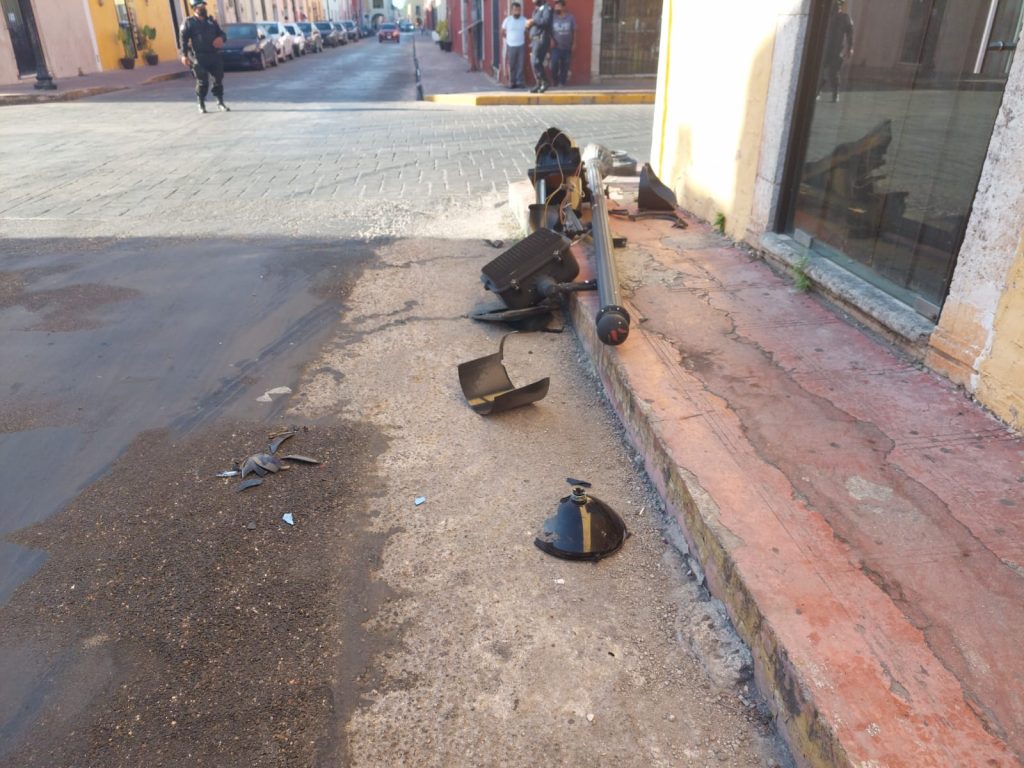 En la calle 37 por 40 del centro de Valladolid, en donde un tractocamión Kenworth color blanco con placas de transporte federal de carga, al transitar sobre la calle 37, a falta de precaución de su conductor al realizar cambio de direccion a la izquierda sobre la calle 40, colisiono con su parte lateral izquierda de su remolque contra el semáforo